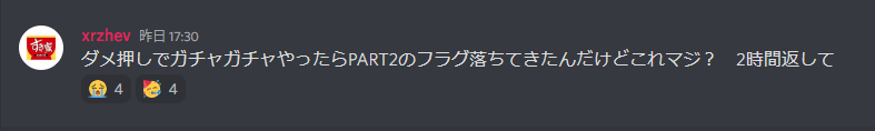 24時間のCTFだったのでチームメンバーが皆頑張って最後までプレイしていたので楽しかった。 一方、チームとしてはCryptoの進捗が悪く、そこで上位チームとの点数差が開いたと考えている。 Cryptoは俺が拾っていけるよう頑張っていく。修行するぞ~!